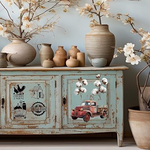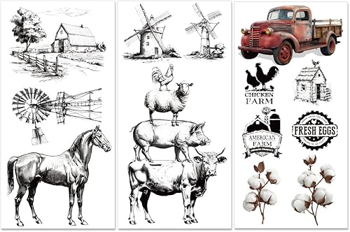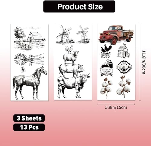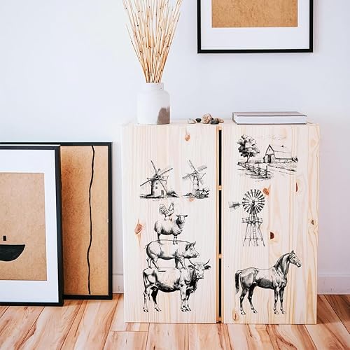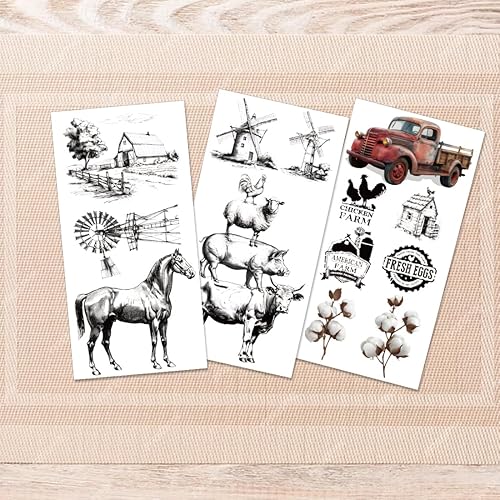 PLIGREAT 3 feuille de Transferts Vintage pour L'Artisanat et les Meubles Sketch Farm Frotter Sur les Autocollants de Transfert Frotter Sur les Décalcomanies Papier de Transfert de Décoration