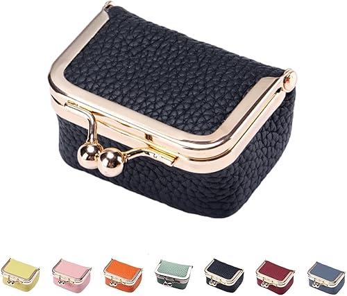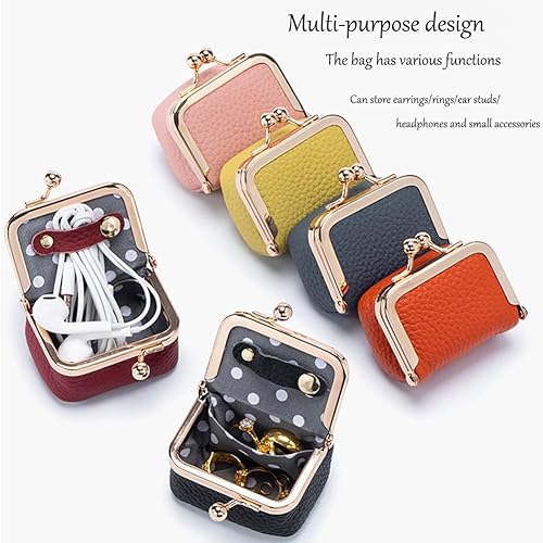 Mini boîte à bijoux en cuir véritable, boîte à bijoux compacte, sac à rouge à lèvres multifonctionnel pour femme, mini porte-monnaie et organisateur de bagues en diamant avec boucle réglable (noir)