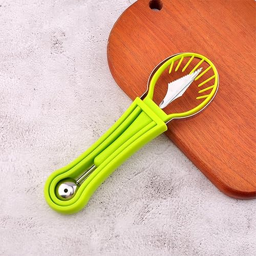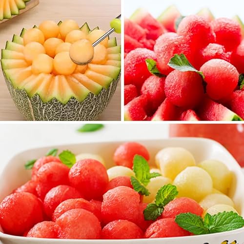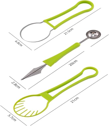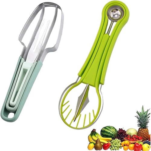 Ensemble de Trancheuse à Pastèque, Couteau à Pastèque Multifonctionnelle, 4 en 1 D'outils de Sculpture sur Fruits et Coupe-Fruits 3 en 1 en Acier Inoxydable