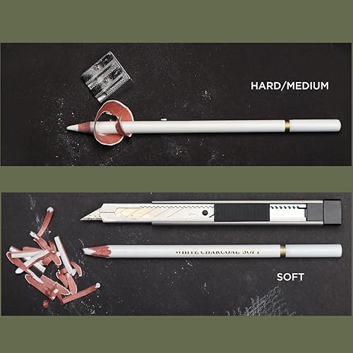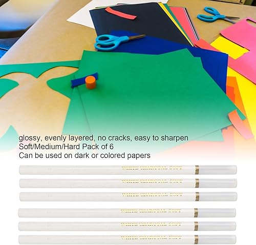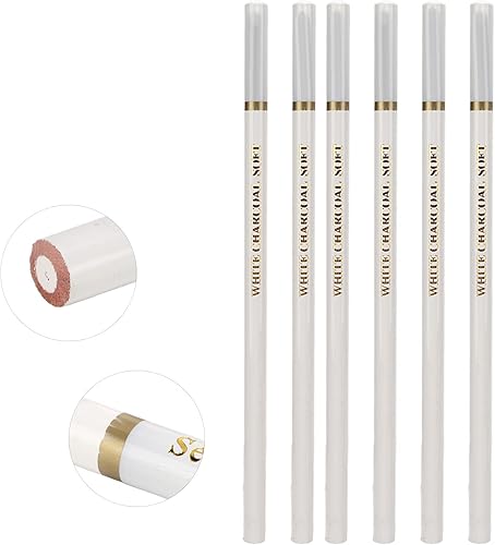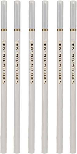 Crayons à Charbon Blanc de 6 Pièces, Ensemble de Crayons à Croquis Blanc Doux et Mi-brillant | Ensemble de Crayons à Charbon de Bois Professionnel