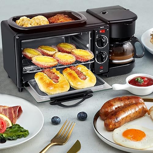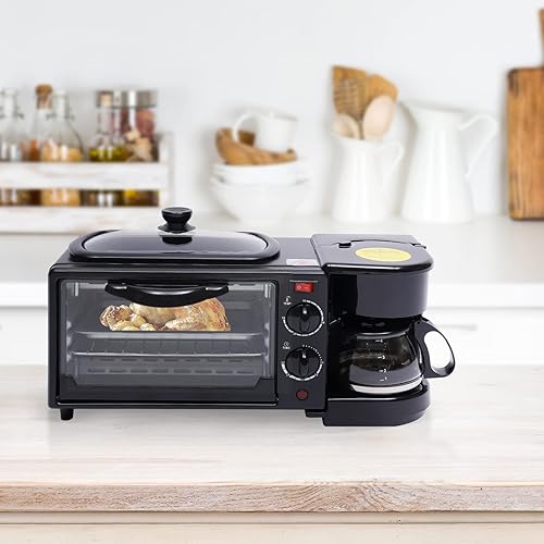 Mini Four 3 En 1 Plaque De Cuisson Four à Pizza Toast Petit-DéJeuner (Avec machine à café)Noir