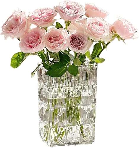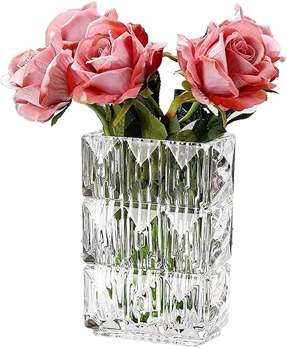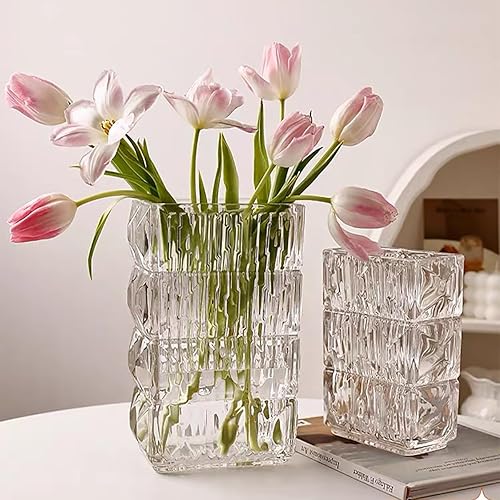 Vase Carré en Verre Transparent Vase en Forme de Livre en Verre Vase Design Moderne en Verre pour Salon Centres de Table Bibliothèque Comptoir Mariages (15 * 10 * 20cm)