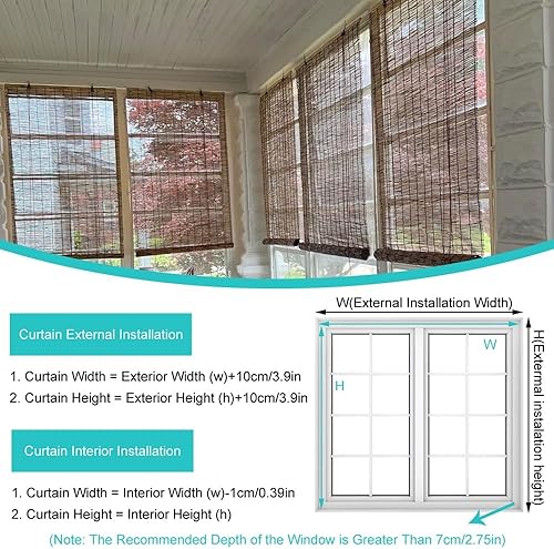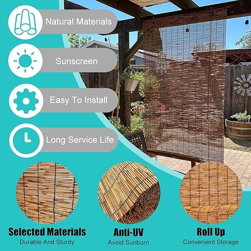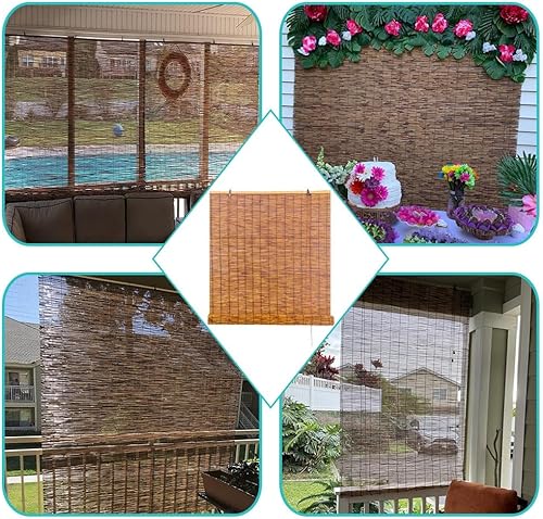 Store Enrouleur Exterieur Store en Bambou Anti-UV Rideau de Roseau avec Levage Store Vénitien pour Fenêtres Portes 50 60 75 80 95 100 115 120 135 140 155 160 175 180cm