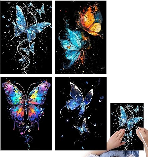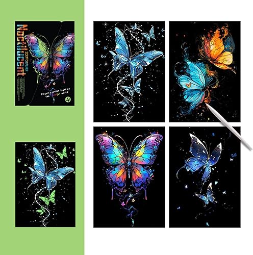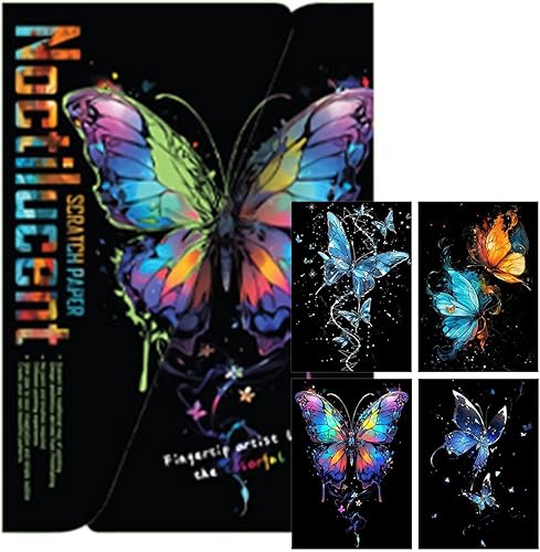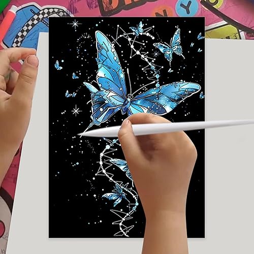 Palaufr Papier d'art à gratter pour Adultes, Peinture par Scratch pour Adultes,Papier à Peindre à gratter pour Qui Brillent dans Le Noir A4 - Papier de Peinture Arc-en-à gratter pour, Filles, garçons