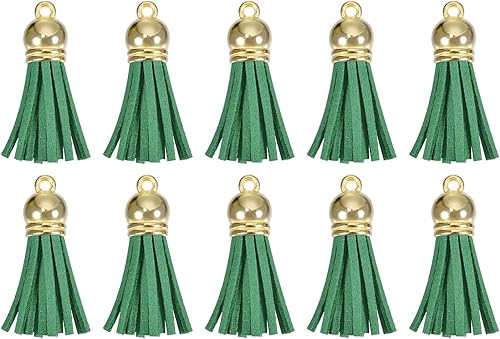 QUARKZMAN 30Pcs 1.5 Pouce Charme Porte-Clés à Pompons en Cuir avec Capuchon Doré pour la Fabrication de Bijoux de Bracelets Pendentifs, Décoration Artisanale DIY, Vert Foncé