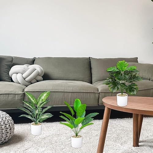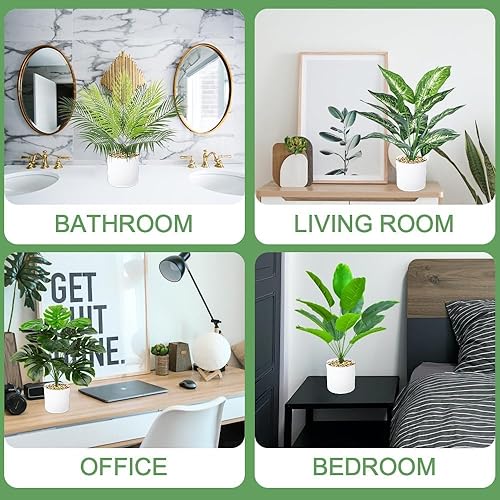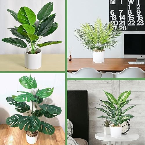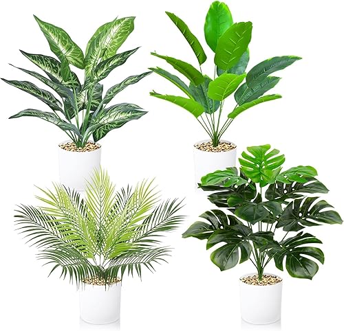 Lighterday Lot de 4 pots de plantes artificielles en pot de 40 cm - Vert - Faux plantes artificielles comme de vraies plantes décoratives en plastique pour salon, chambre à coucher, salle de bain