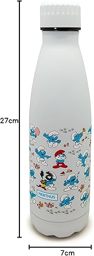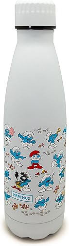 Nerthus Fih 756 Bouteille THE SMURFS Double Paroi Motif Schtroumpfs 500 Ml, Acier Inoxydable, sans Bpa, 18/8