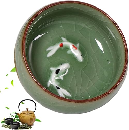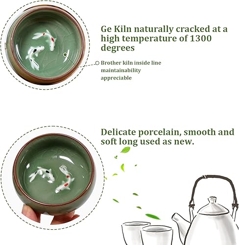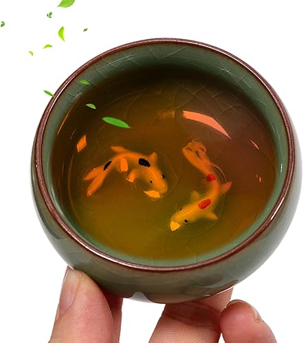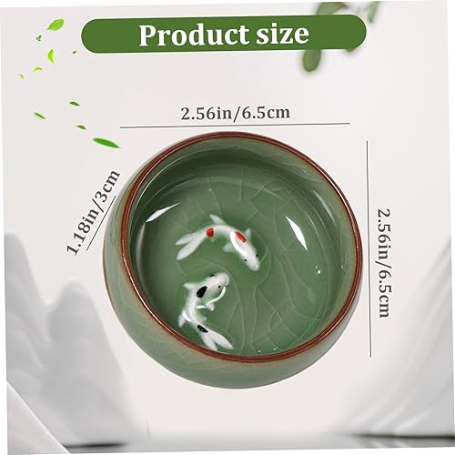 NASSMOSSE Tasse de thé chinois 2,56x1,18 pouces 2 oz..La tasse de thé céladon chinois à long quan propose des motifs de crépitements naturels kung fu cartonnes avec du poisson koi vif