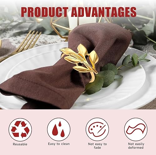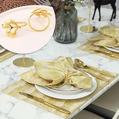 Batheidon Rond de Serviette Doré, Rond de Serviette,avec Motifs de Feuilles et Perles, Décoration Élégante pour Mariages, Dîners et Réceptions, Accessoires de Table Raffinés(12 Articles)
