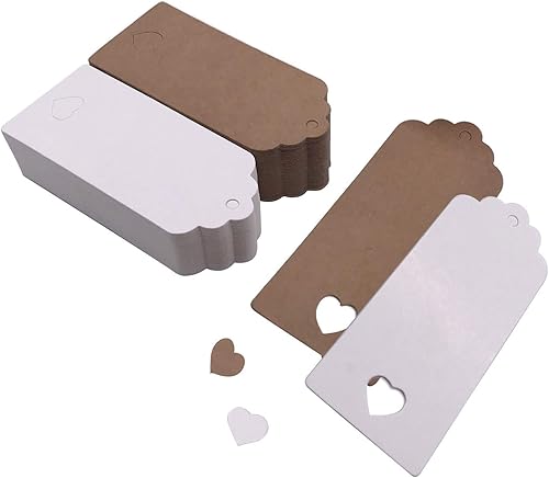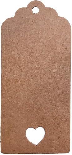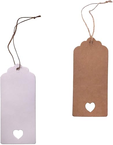 Absofine Lot de 100 étiquettes cadeaux en papier kraft avec cœur et ficelle de jute 30 m pour mariage, bricolage, étiquettes de prix