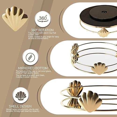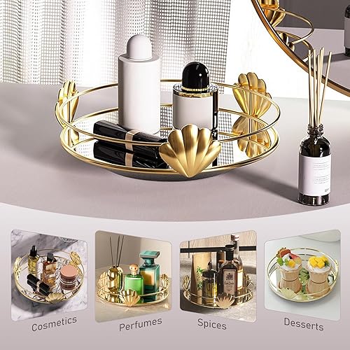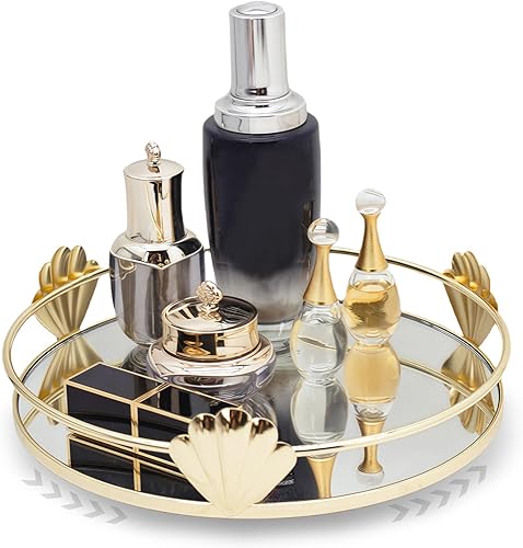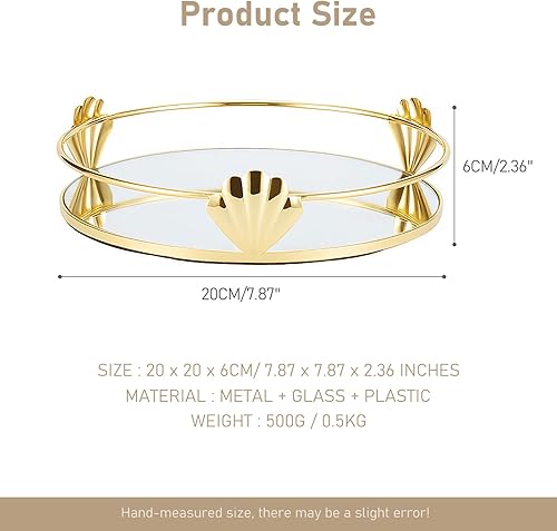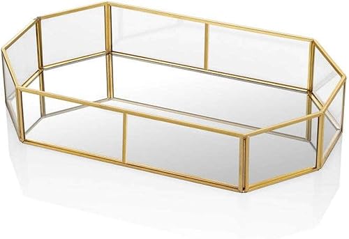 HARLIANGXY - Plateau miroir doré - Vintage - Petit plateau en métal - Plateau décoratif - Rangement du parfum - Plateau pour bijoux - Organiseur pour produits de maquillage - 20 x 14 x 4 cm