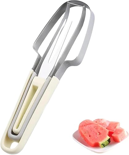 Watermelon Coupe Pastèque Slicer Cutter 3-en-1 Outil Portable pour Fête à la Maison Outil Couteau Fruits pour Gadget de Cuisine Moulin à Pastèque (Blanc)