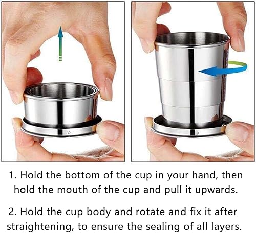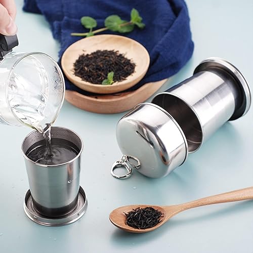 Hominas Tasse Pliable en Acier Inoxydable, Tasse Pliable de Voyage 240 Ml Rétractable Pliante À Café Pliante Portable pour Randonnée Camping Voyage