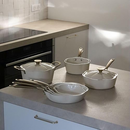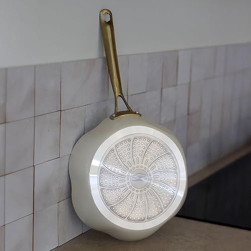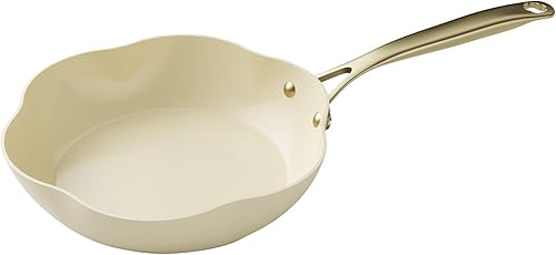 MENASTYL - Poêle 26cm Dahlia sans PFAS - Revêtement céramique antiadhésif crème - 98% d'aluminium recyclé - Tous feux dont induction et lave-vaisselle - Poignée rivetée en inox - 6020939