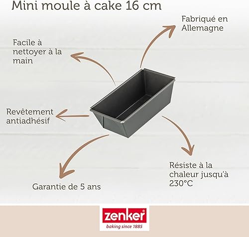 Zenker 7684 Mini moule à cake, moule à brioche, moule à cake, moule à gâteau, Acier inoxydable, Noir, 16 x 8,5 x 5,5 cm