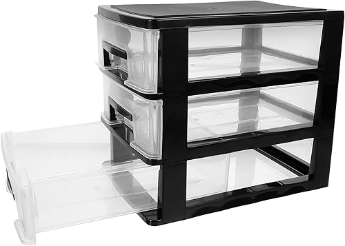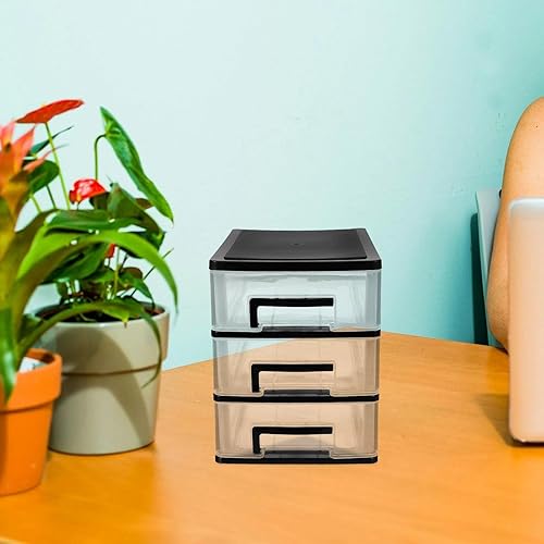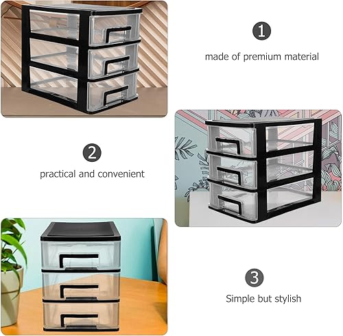 Boîte de rangement transparente à 3 couches en plastique transparent - Armoire de rangement de bureau - Organiseur de tiroir - Transparent