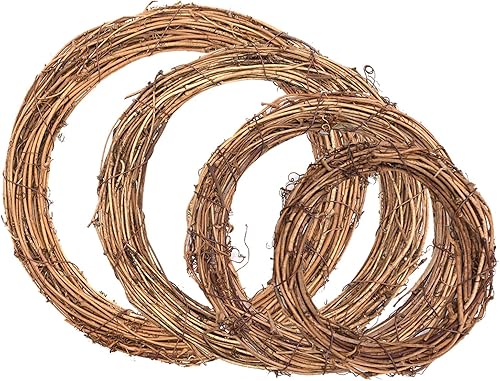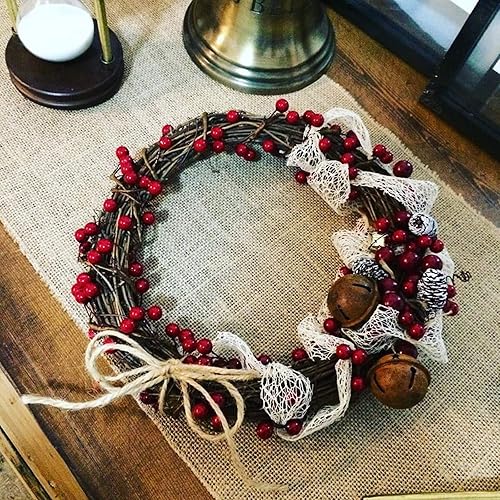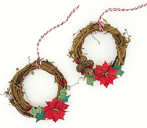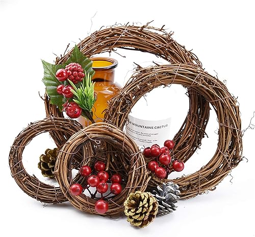 Lot de 4 couronnes de Noël rétro en rotin naturel, pour loisirs créatifs, décoration murale pour fêtes, mariage, Noël