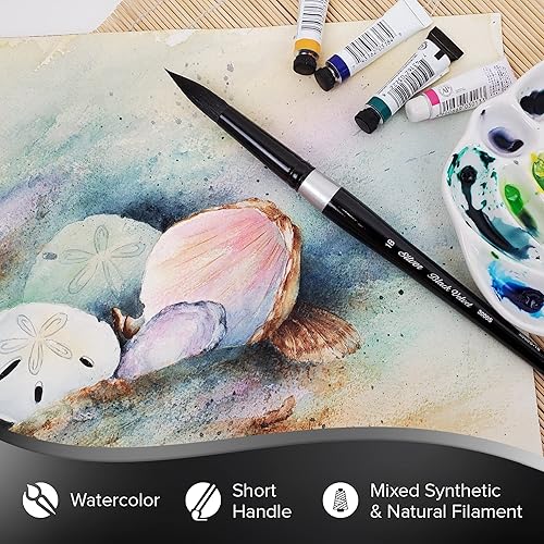 Silver Brush Limited Pinceau Rond Velours Noir 3000S18 pour Aquarelle Taille 18 Manche Court