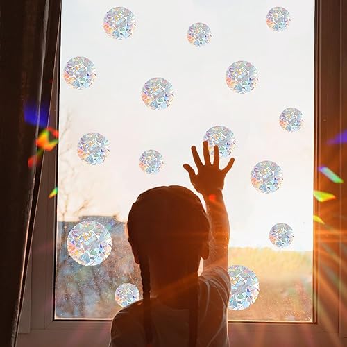 Autocollants de Fenêtre Anti-Collision, 42 Autocollants de Fenêtre pour Verre, Autocollants de Fenêtre en Verre Teinté, Film de Fenêtre Arc-en-Ciel (Coloré)
