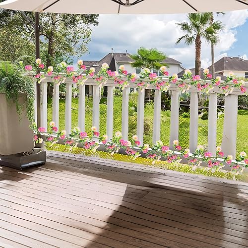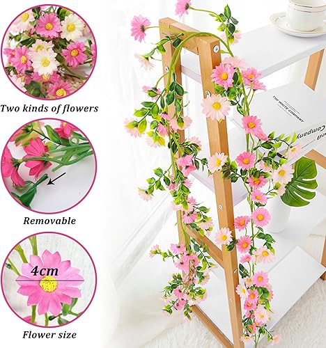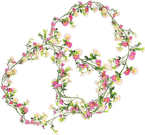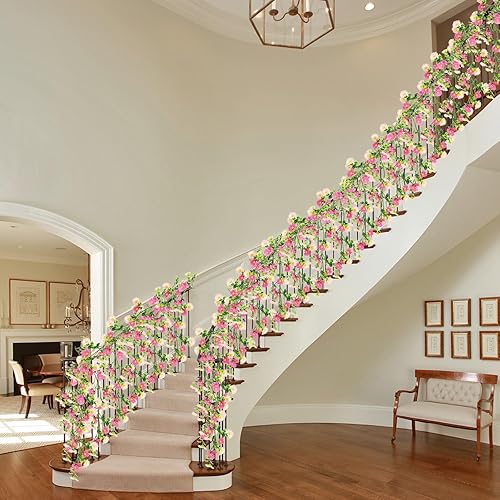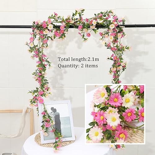 CONNECTION Lot de 2 guirlandes de fleurs artificielles roses - 2,1 m - Guirlande de fleurs artificielles - Pour mariage, jardin, chambre, fête - Décoration murale