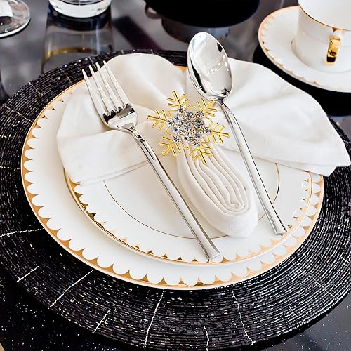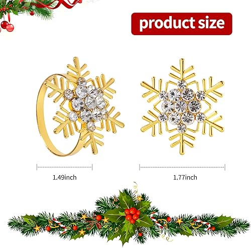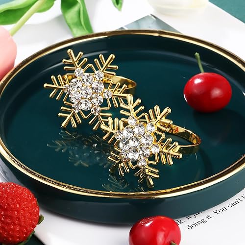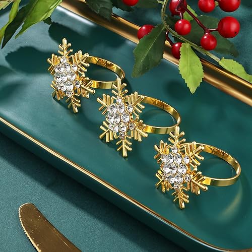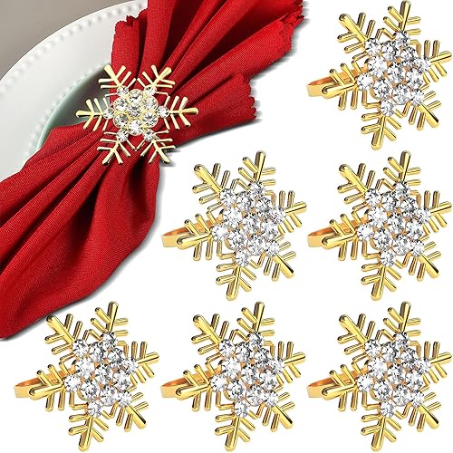 Rond de Serviette pour Noël 6 pièces Rond de Serviette Or Rond de Serviette de Flocons de Neige pour Noël décoration de Table,fêtes,Mariages, dîners de Gala Anneaux de Serviette