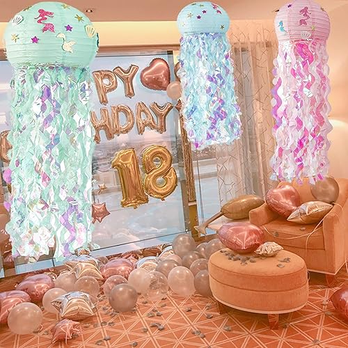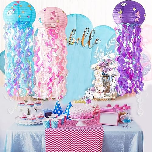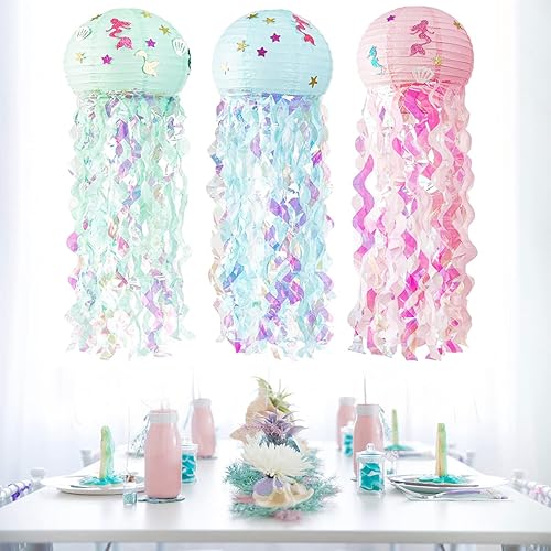 3 Pièces Lanternes en Papier de Méduses, Lanternes de Sirène, Décoration Suspendue de Lanterne, pour la Décoration de Fête, Événements de Centre Commercial, Mariages