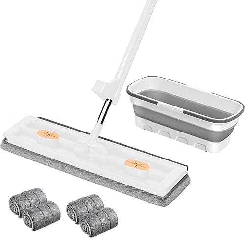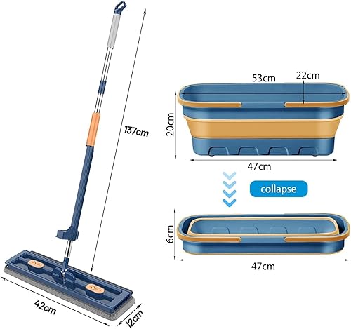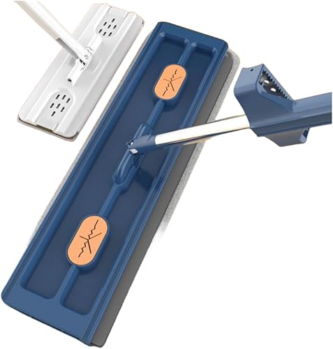 Kit Balai Serpillère et Seau, Grande Serpillière Plate avec Tampons en Fibre Super Absorbants et Utilisation Humide et Sèche, Compression Automatique de l'eau (Set, Bleu)