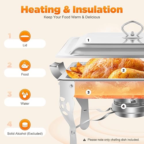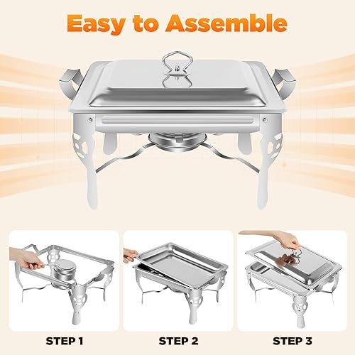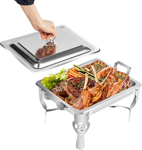 Futchoy Chafing Dish Chauffe-plats, en acier inoxydable, 6 l, avec porte-pâte combustible, pour traiteur, buffet, fête, 21 x 26 x 26 cm