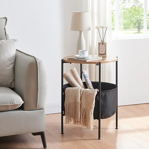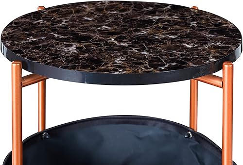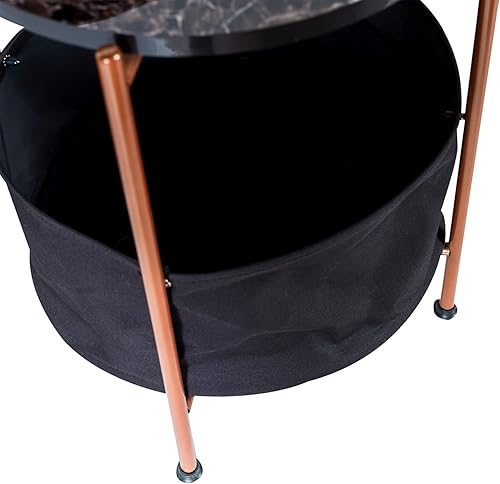 [en.casa] Table d'Appoint Ronde Bout de Canapé avec Panier de Rangement Panneau de Particules Métal Polyester 59 x 47 cm Marbre Noir Bronze Noir