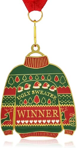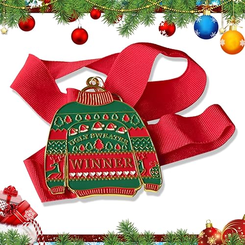 Médaille de Chandail de Noël Laid avec Ruban de Cou Prix pour Concours de Chandail Laid Articles de Fête Ornement d'Arbre de Noël de Vacances