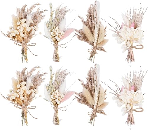 Mini Bouquet Fleurs Séchées, Lot de 8 Bouquet de Fleurs Séchées, Fleurs Sechees Naturelles avec Tige, pour DIY Cadre Photo Scrapbooking Vase Décoration Maison Mariage Bouquet de Fleur Séchée Créatif