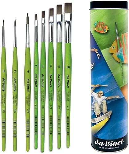 DaVinci ESPACE BEAUX ARTS da Vinci 8 Pinceaux synthétiques 3 pièces Série 373 Rond, 0,2,4 et série 374 Pinceaux à Poils Plats synthétiques, 2, 4, 6,8,10 + Tube de Rangement Gratuit