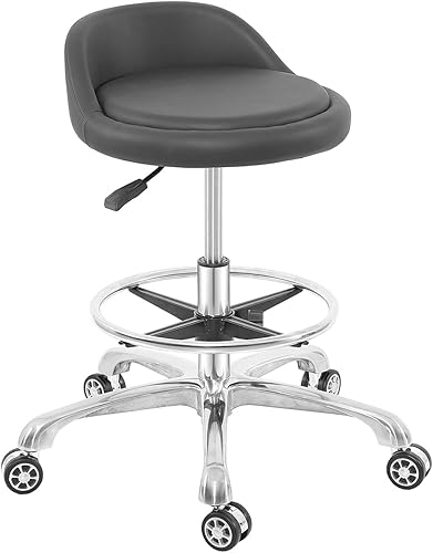 Nazalus Tabouret Roulant réglable, Base en métal Robuste avec Repose-Pieds, pour Bureau, Maison, Magasin, Cuisine, beauté (Taille L)