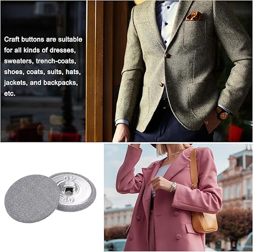 QUARKZMAN 30pcs 40L Étoffe Tissu Couvert Bouton 25mm Rond Métal Jarret Couture Boutons pour Costumes Robe Chemisiers, Gris