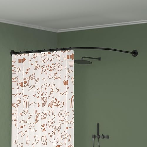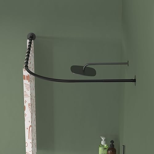 Misounda Tringle Rideau Douche Sans Perçage, Barre Noire Extensible 70-95 X 105-165 cm, Angle