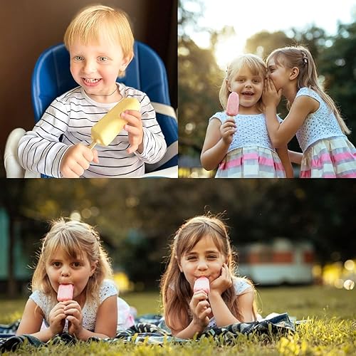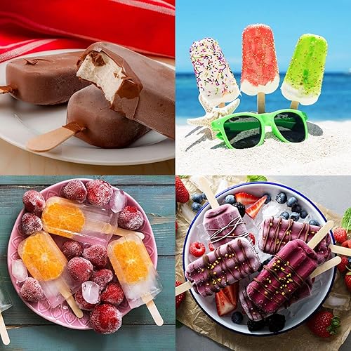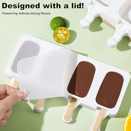 Lot de 2 moules à glace, avec 100 bâtonnets en bois, avec 1 Brosse de Nettoyage et 2 Couvercles, silicone moules à glace, moule oval classique 4, RéUtilisable, sans BPA, DIY Homemade Glace