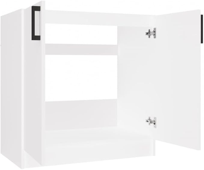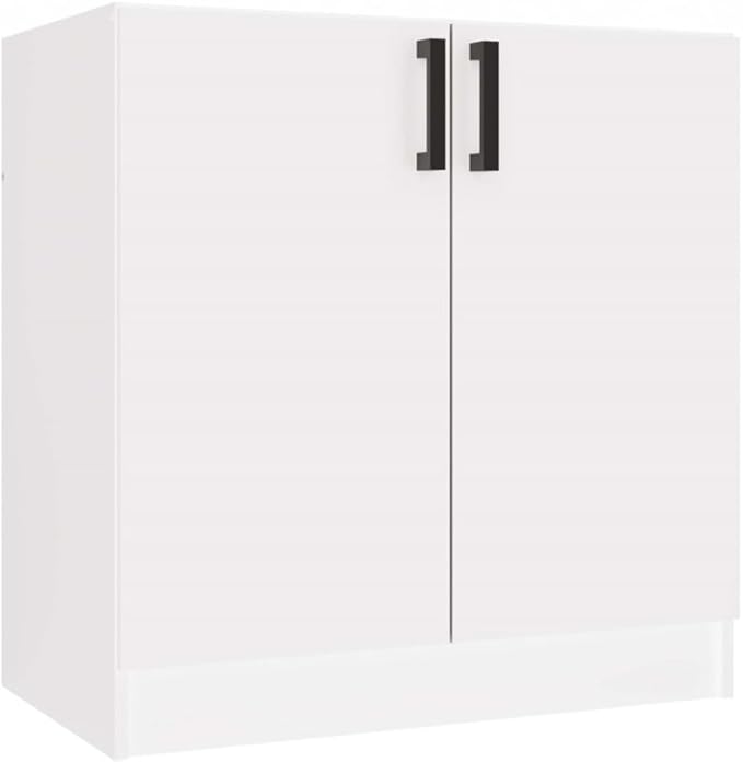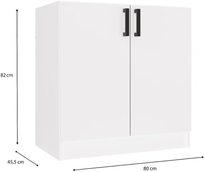 BDW Katia D-80 Meuble bas de cuisine, 80 x 45,5 x 82 cm, blanc mat, 2 portes avec étagère, meuble sous lavabo, meuble de cuisine