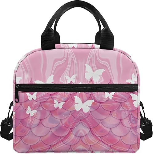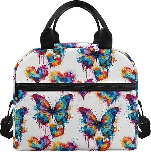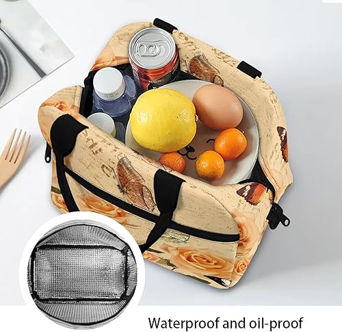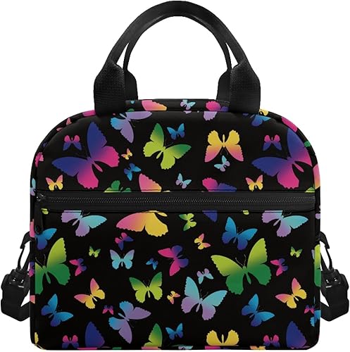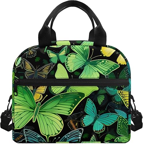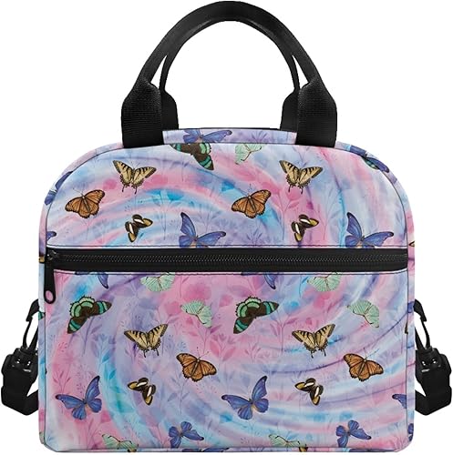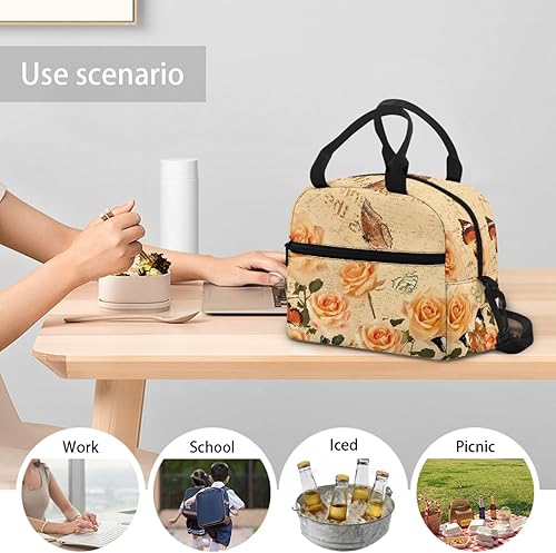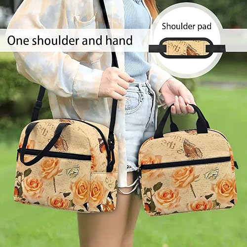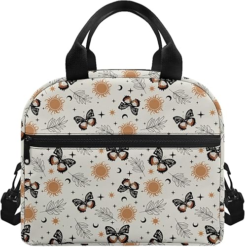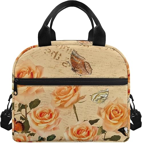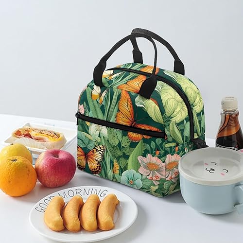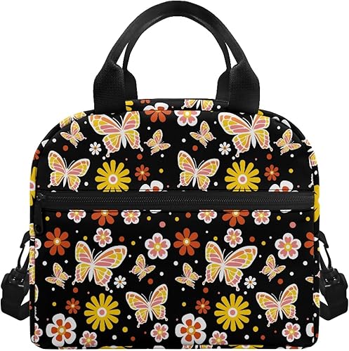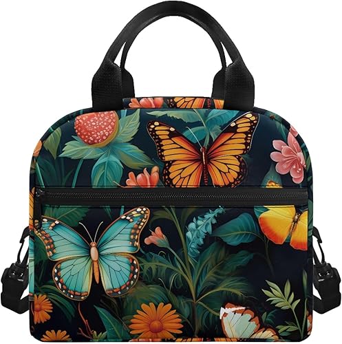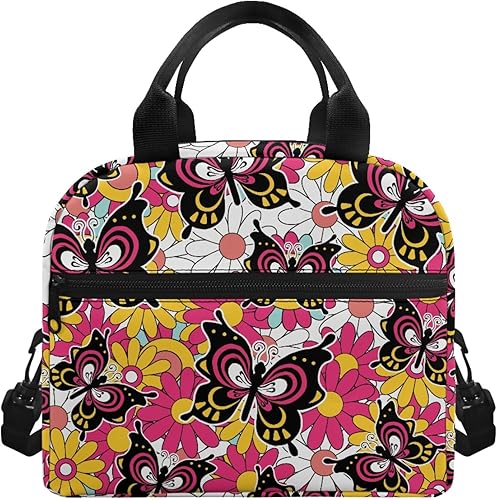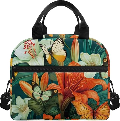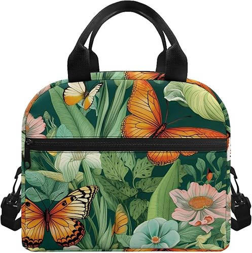 Surwin Sac Repas Isotherme, Motif Papillon Sac à Déjeuner Sac à Lunch Isolé Design en Bandoulière/Poche Avant Sac à Lunch Lunch Bag pour Adulte Enfant, Bureau L'école Travail (Plante à Fleurs)