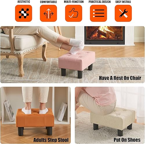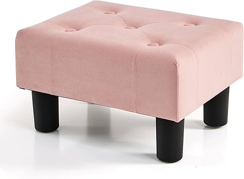 BRIAN & DANY Petit repose-pieds ottoman, repose-pieds en bois et velours avec pieds en plastique, repose-pieds de canapé, siège supplémentaire pour salon, entrée, bureau, vert