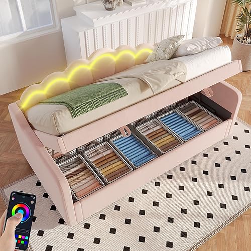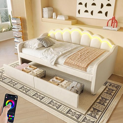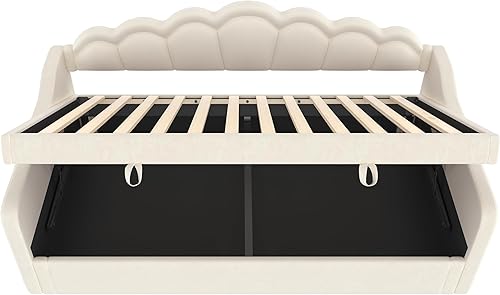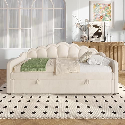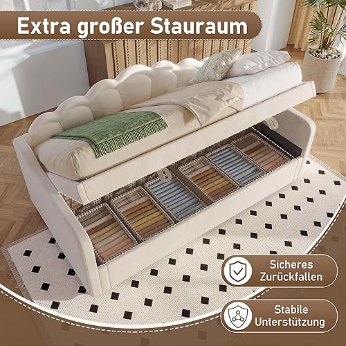 Zepneiy Lit 90x200 avec lit gigogne 90x190, Canapé lit avec sommier à Lattes, Lit Rembourré 90x200 Velours Beige (sans Matelas)