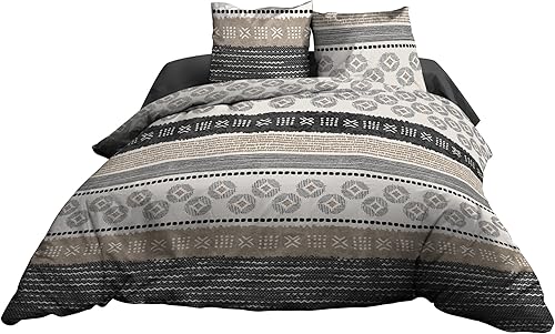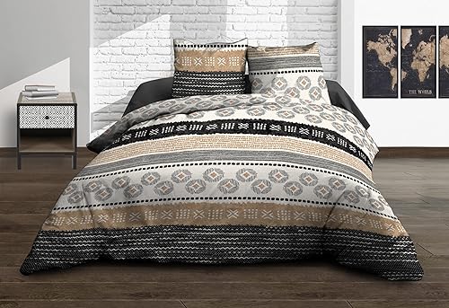 Housse de Couette 220x240 + 2 taies - Pur Coton 57 Fils - Yuma, Noir, Beige
