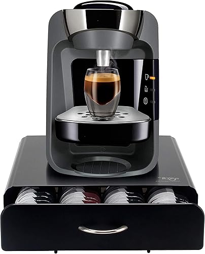 EVER RICH® - Support pour Capsules de Café T-Disc Bosch Tassimo | Tiroir de Rangement pour 64 Pièces | Design Anti-Vibrations (Métal / Noir)
