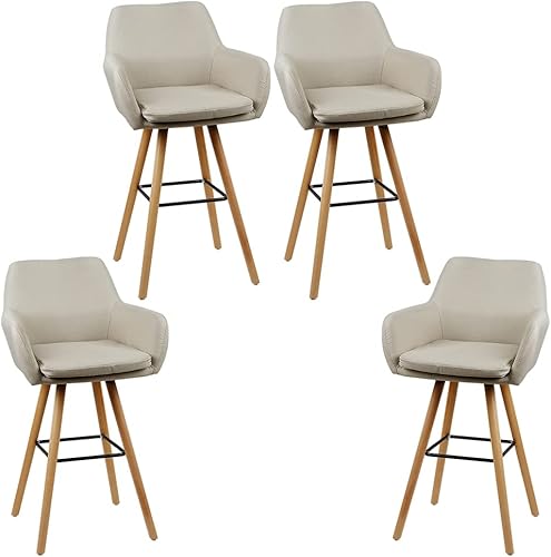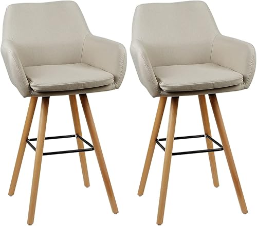 Belfoyer Grant Chaise Haute de Bar Tabouret de Bar Lot de 2 Fauteuil Chaise Bar Haute en Tissu Tabourets de comptoir avec Repose-Pieds, Tabourets Hauts pour Bar/Cuisine (2, Beige)