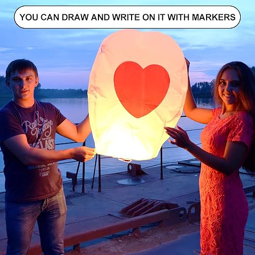 Fivtsme Lanternes Célestes Chinoises, Lanterne Volante 100% biodégradable Papier, Lanternes Chinoises du Ciel Lanterne Volante Chinoise, Utilisées pour Un Anniversaire, Un Mariage, Une fête