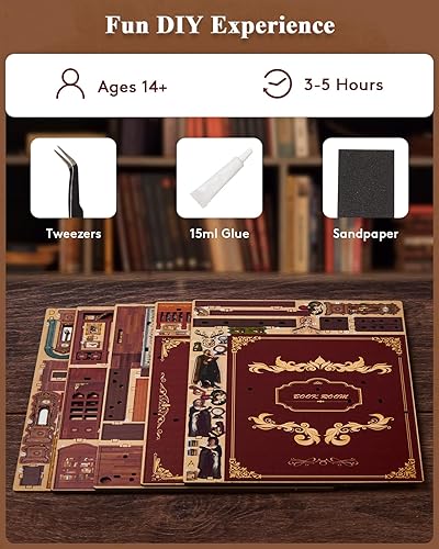 Serre-livres DIY de style librairie, avec pince à épiler, colle, instructions individuelles et boîte en papier