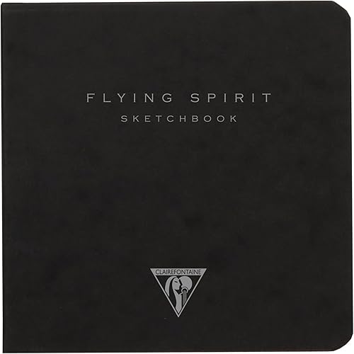 Clairefontaine 930020C Carnet Flying Spirit - 60 Feuilles Papier Esquisse Ivoire 19x25 cm 90g - Couverture en Carte Noire - Illustration imprimée au dos aléatoire