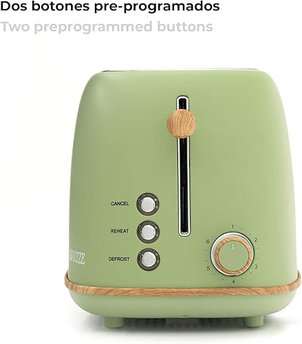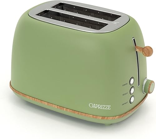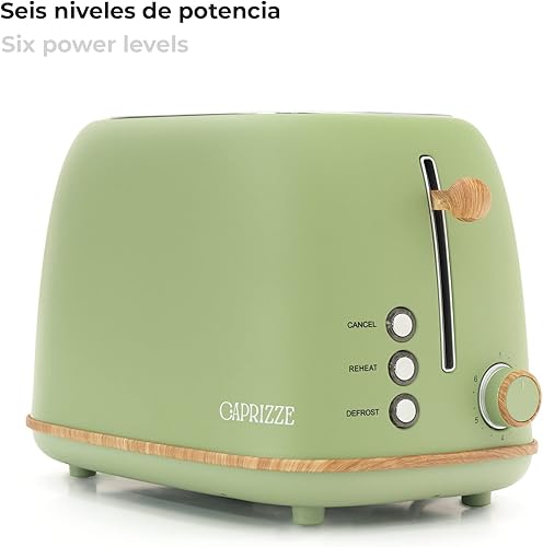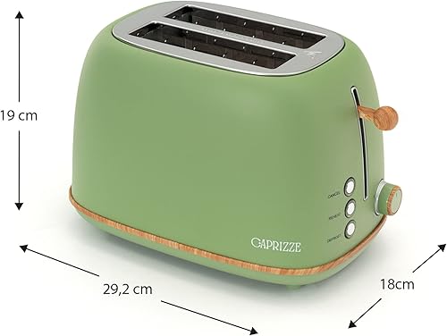 Grille Pain Caprizze Kaito avec Double Fente Extra Large 6 Niveaux de Grill Design Vintage avec Effet Bois Vert Mat