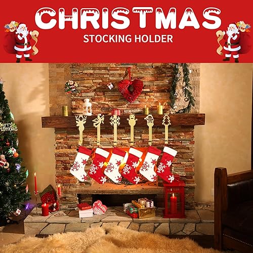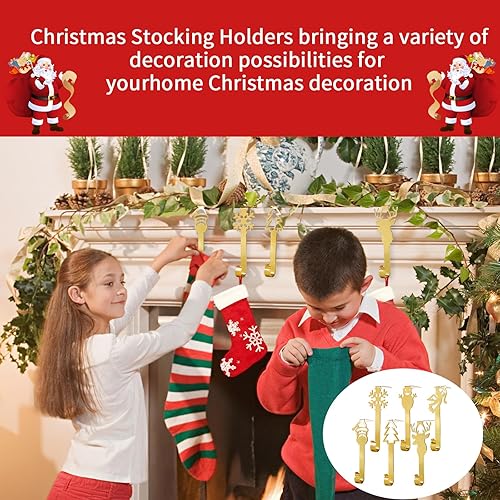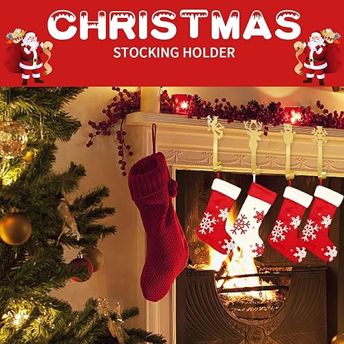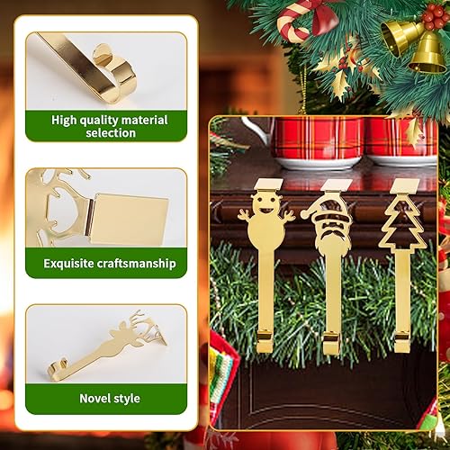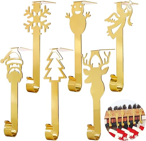 Valicaer 6PCS Crochets de Chaussettes de Noël en Métal Support de Décoration Cintres de Bas D'éléments Crochet pour Décoration, Neige Renne Bonhomme Neige Cintre Support (L'or)