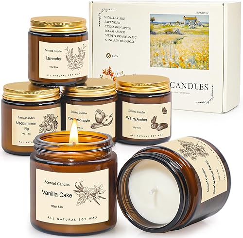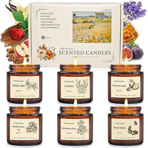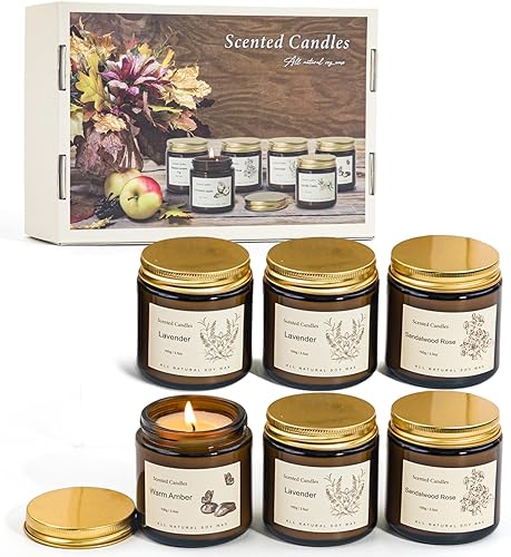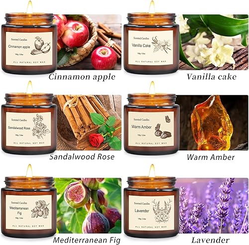 Lot de 6 Bougies Parfumées Idée Coffret Cadeau Anniversaire Femme Parfum de Noel Decoration pour Mariage Amie/Collègue Pot Bougie Parfumee Parfait Cadeaux d'anniversaire pour Mère,épouse,Maîtresse