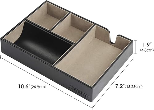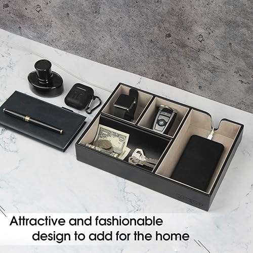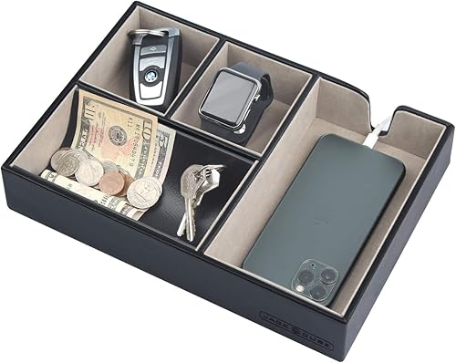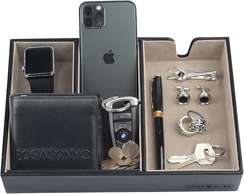 J JACKCUBE DESIGN JackCubeDesign MK233A Plateau de valet en cuir, organiseur de bureau ou de commode, pour clés, téléphone, portefeuille, pièces de monnaie, bijoux et table de chevet (noir, 27 x 18,3